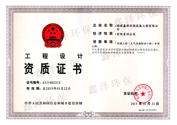环境工程(大气污染防治工程)专项工程设计乙级证书