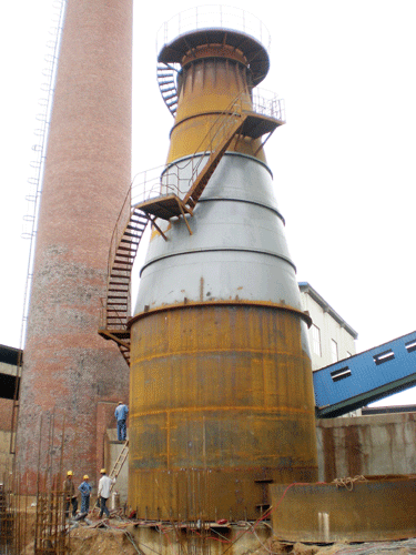 广西新合力冶金有限公司66m2烧结机烟气脱硫工程自开工建设以来,项目部及施工人员努力克服高温酷热的天气,合理安排施工工期,减少多雨、停电造成的影响。目前已完成吸收塔部分变径段、筒体Ⅳ和筒体Ⅲ合计21.5m,直排烟囱部分合计25m的施工;后续将再接再厉,完成吸收塔筒体Ⅱ和筒体Ⅰ的施工,完成直排烟囱的吊装,进行吸收塔和直排烟囱内玻璃鳞片防腐和外油漆防腐等施工内容。